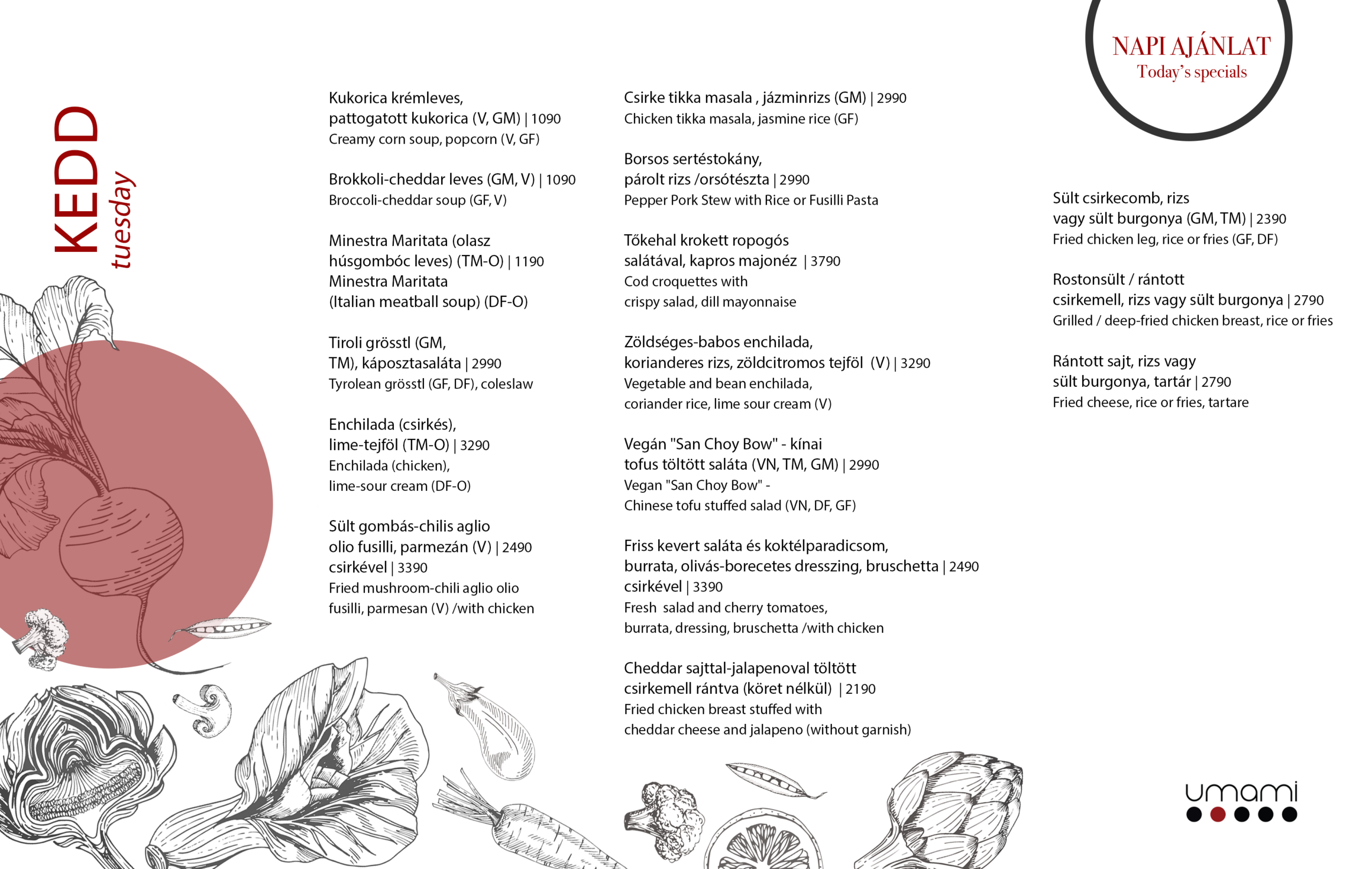WEEKLY MENU (from the 13th to the 17th of April)