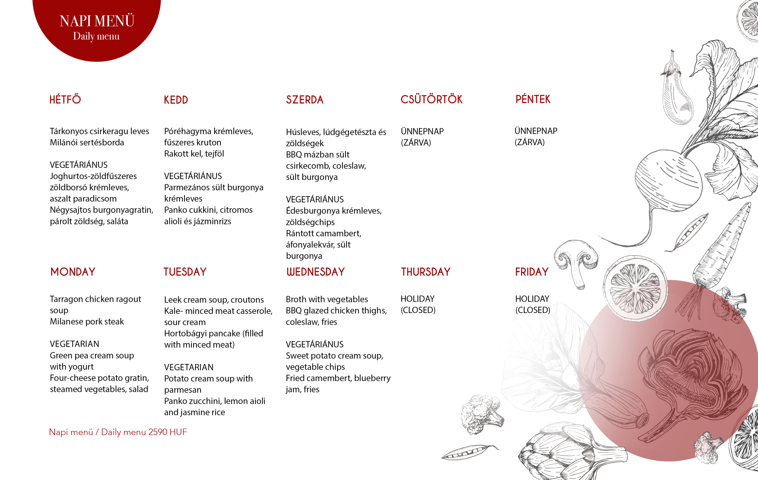 HETI MENÜ ÉS NAPI AJÁNLATOK (október 20. – 22. között)