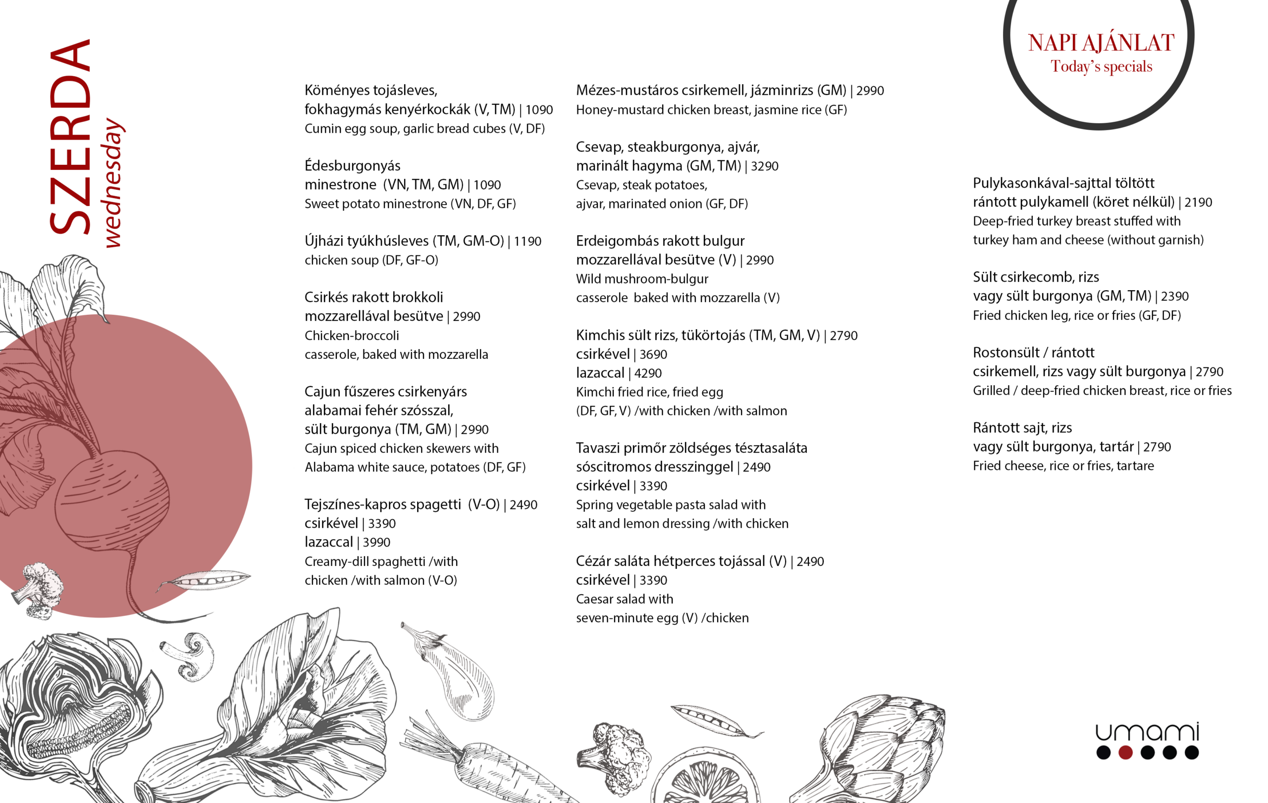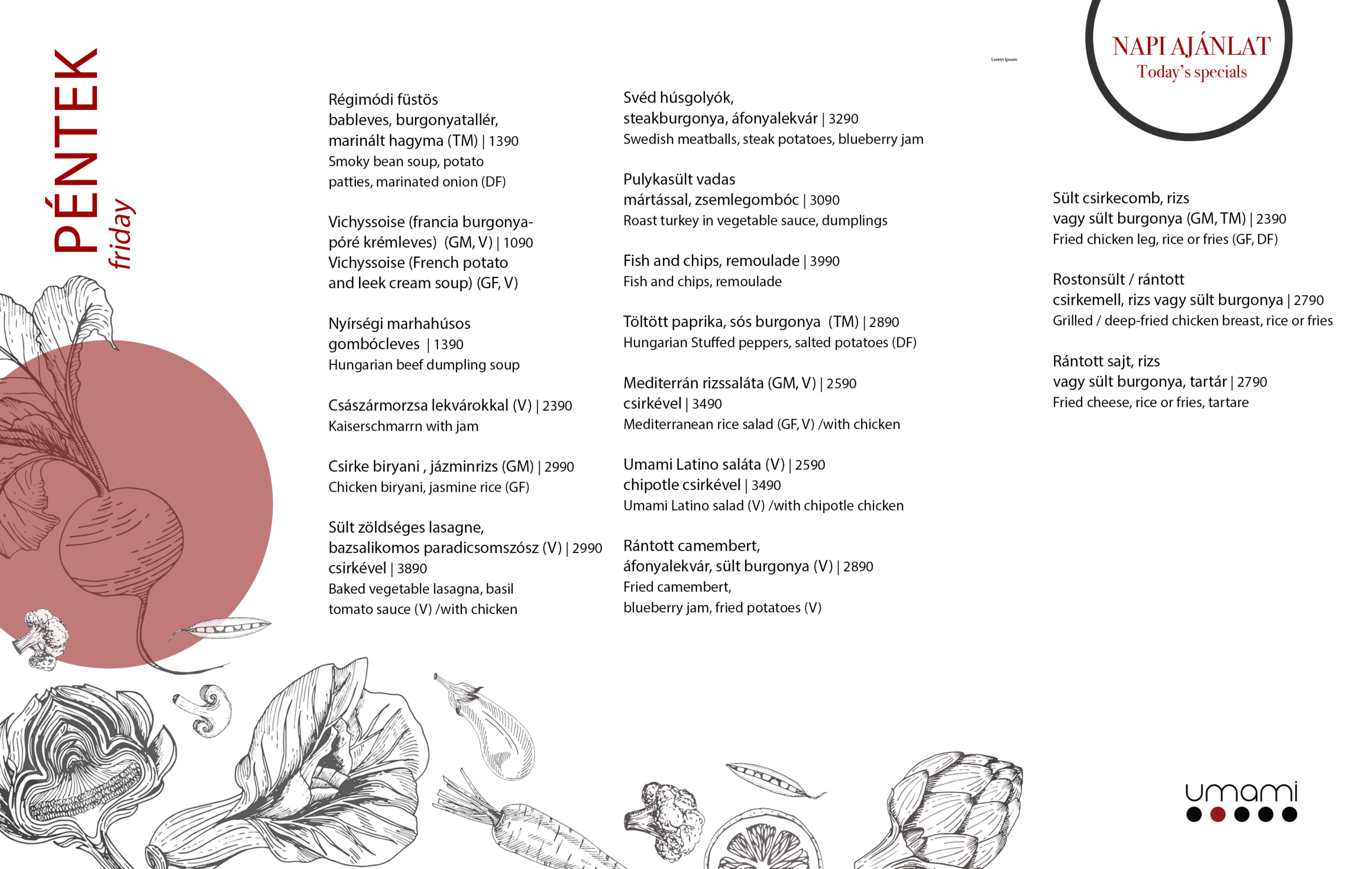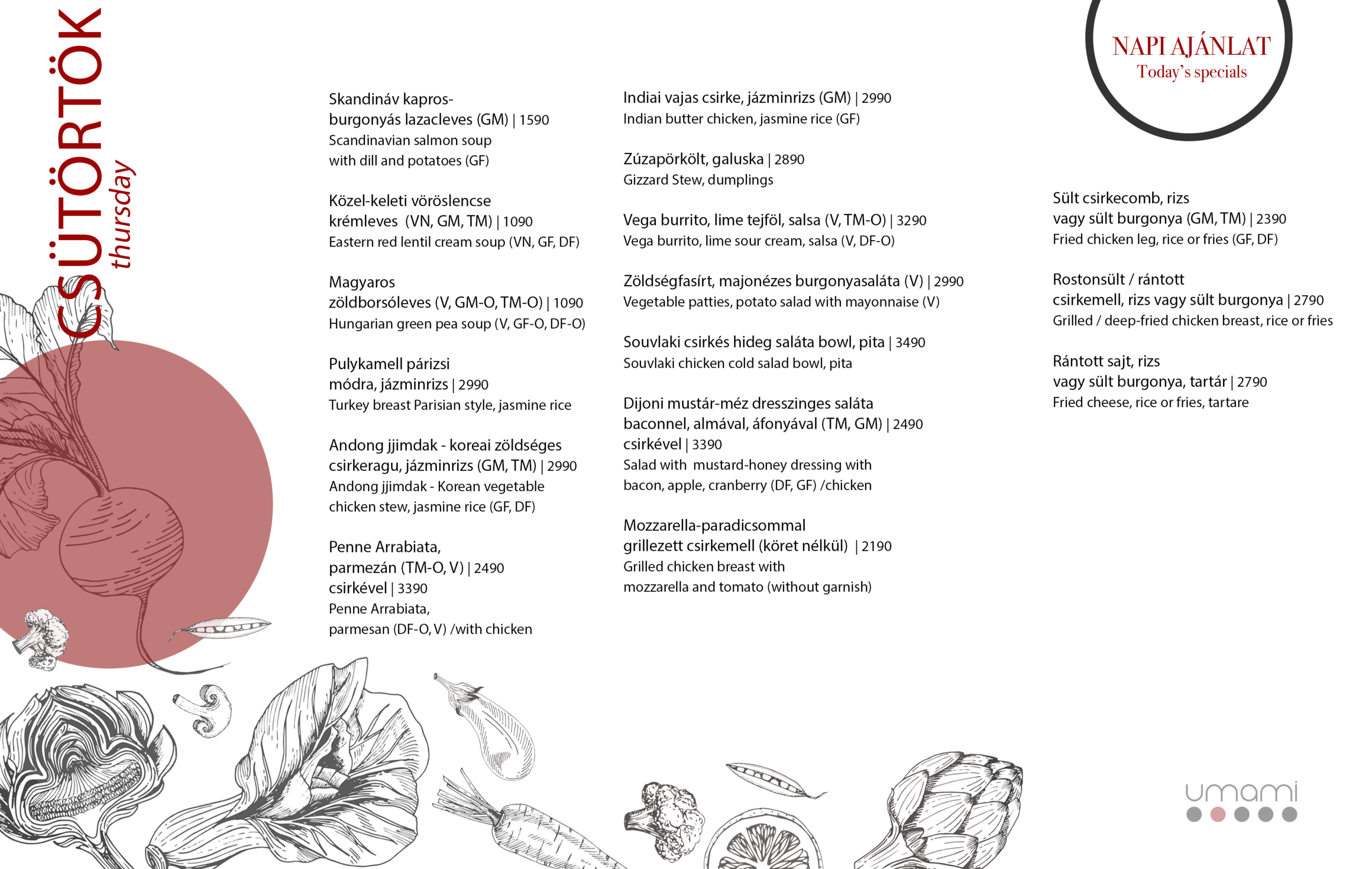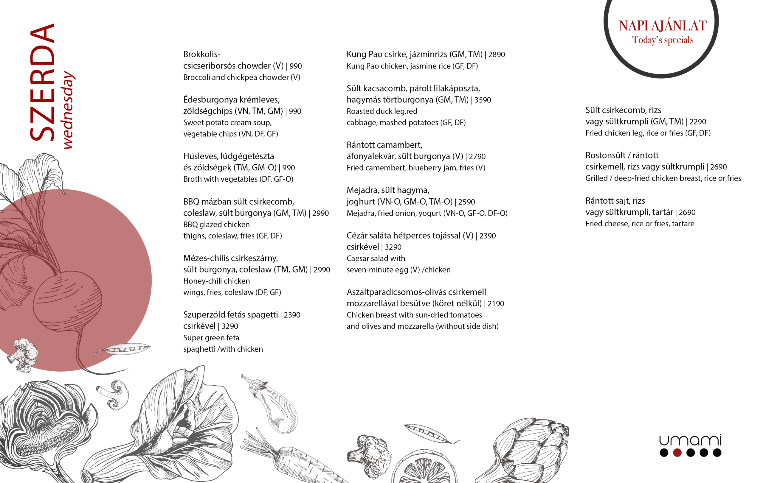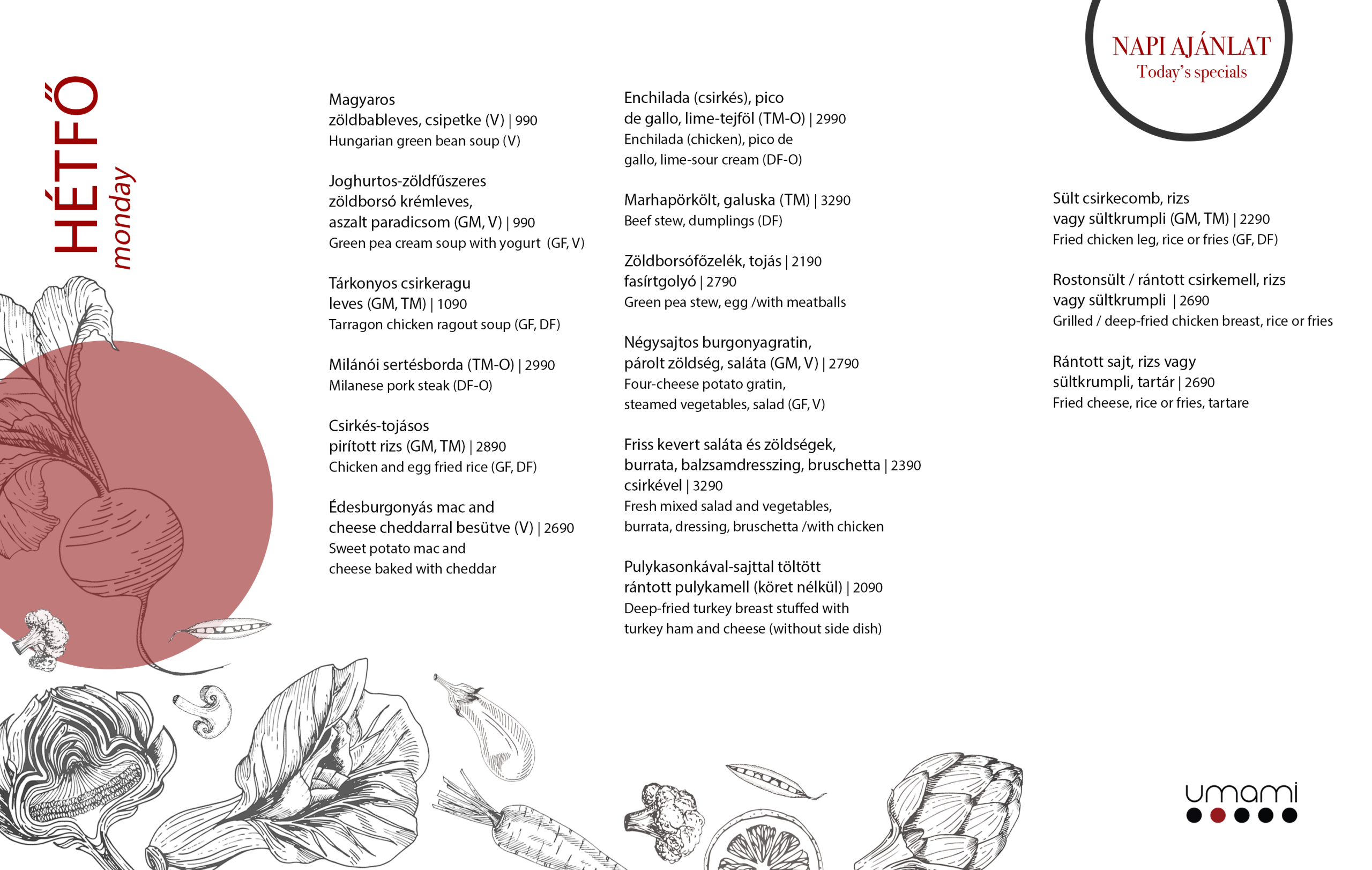 Változatos heti menü ajánlatokkal várunk a pécsi ÁOK területén. A heti menü kínálatunk elérhető weboldalunkon, a napi ajánlatokat pedig meglesheted a sztorikban is. Ebédelj az Umami-ban, kóstold meg heti menü ajánlatunkat!