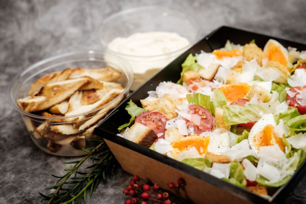 • Cézár saláta grillezett csirkemellcsíkokkal, római salátából, hétperces tojással, parmezánnal, krutonnal, eredeti cézár dresszinggel 600g 3.990,-