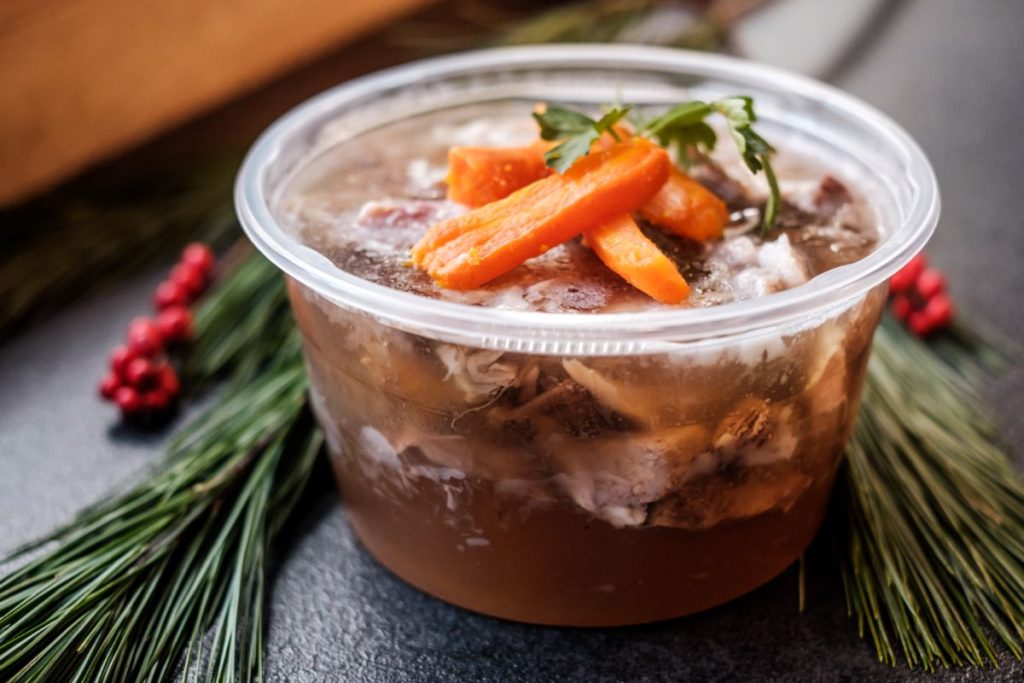 • Hagyományos falusi sertéskocsonya csülkös-körmös- színhúsos- nyelves alkatrészekkel, gyökérzöldségek nélkül, csak tisztán hagymával-fokhagymával és fűszerekkel főzve (GM, TM) 700ml 2.990,-