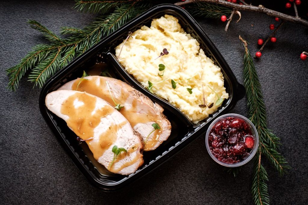 • Zöldfűszeres vajjal kenegetett – lassan sült omlós pulykamell szeletek (hidegen és melegen is tökéletes) (GM) 300g burgonyapürével (GM, V), gravy szósszal, házi vörösáfonya lekvárral (GM) 6.990,-